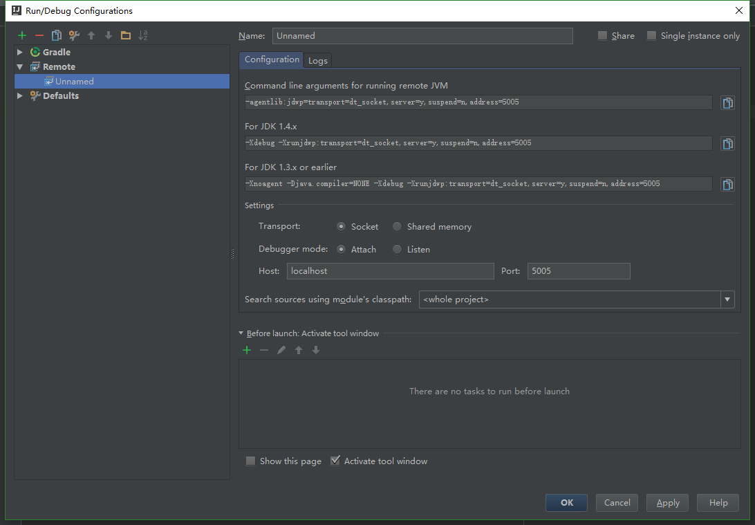 -agentlib:jdwp=transport=dt_socket,server=y,suspend=n,address=5005