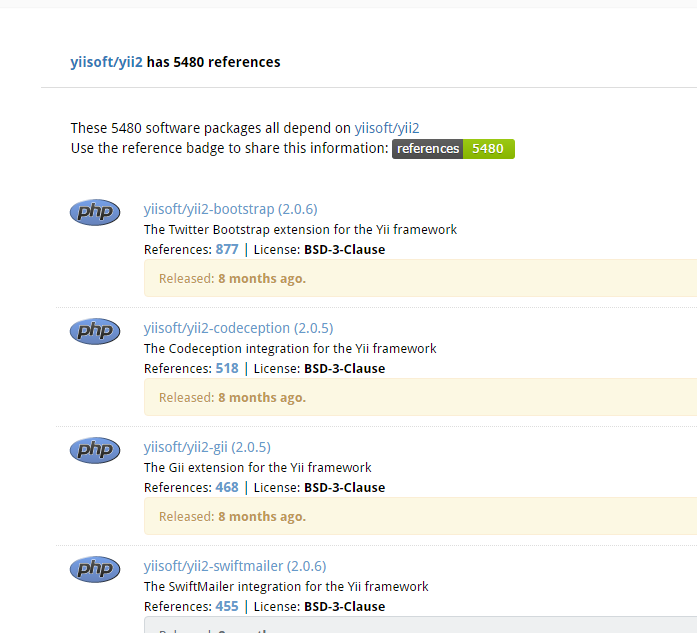 # 发布在 packagist.org (opens new window) 上面的包的状态